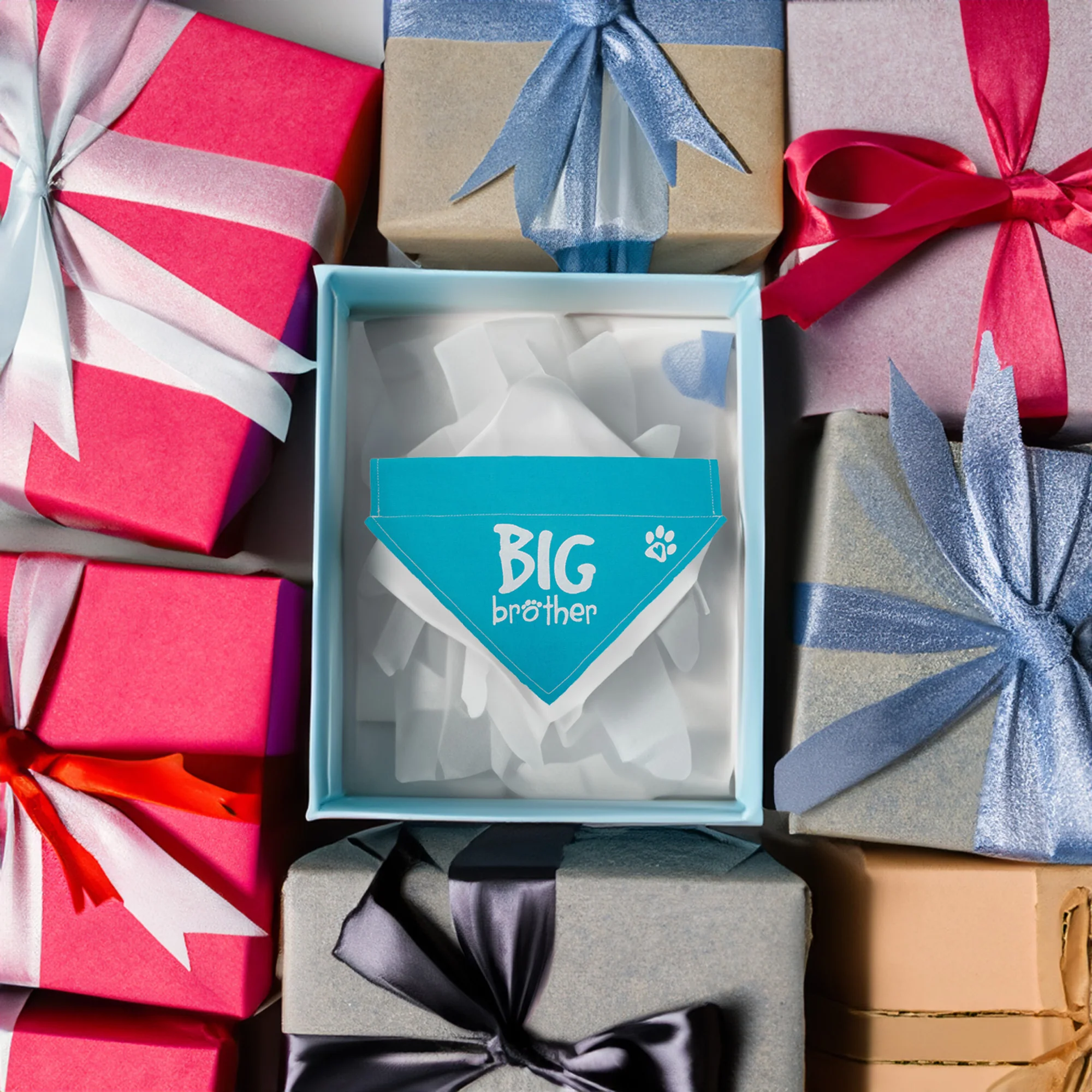 - IN-HOUSE DESIGN: Featuring the adorable "Big Brother" text and a charming paw print icon, this bandana’s design celebrates your pet’s role in the family. The design is boldly printed on the front of the bandana, making it a standout accessory for your dog. Its vibrant blue color adds a cheerful touch, making it perfect for pairing with other pet accessories.